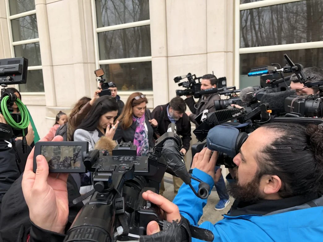 El Chapo’s wife, Emma Coronel Aispuro, who came to court with two of their young daughters, leaving the Brooklyn courthouse on Feb. 15, 2018. (Rebecca Gibian/RealClearLife)